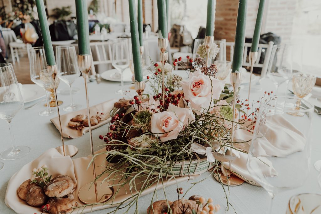 ¿Quieres una mesa navideña elegante pero sencilla? Incorpora velas aromáticas y pequeños detalles brillantes entre las flores. ¡Añadirán ese toque mágico y acogedor que todos aman!