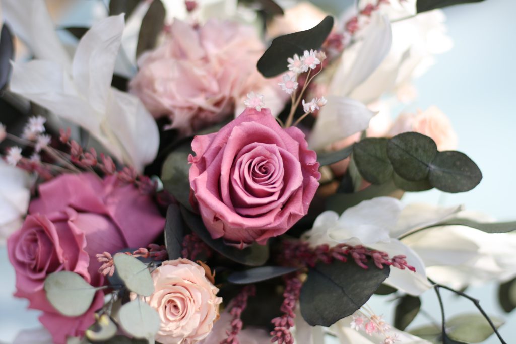 La segunda cuestión es ¿quieres conservar el ramo durante muchos años? Si la respuesta es sí, claramente tendremos que pensar en flores preservadas. Hay flores preservadas preciosas, pero la realidad es que estamos más limitados con los tipos de flores y, siendo sincera, el precio también aumenta considerablemente. Claro que tendrías un ramo de novia, que conservándolo bien, es para toda la vida.